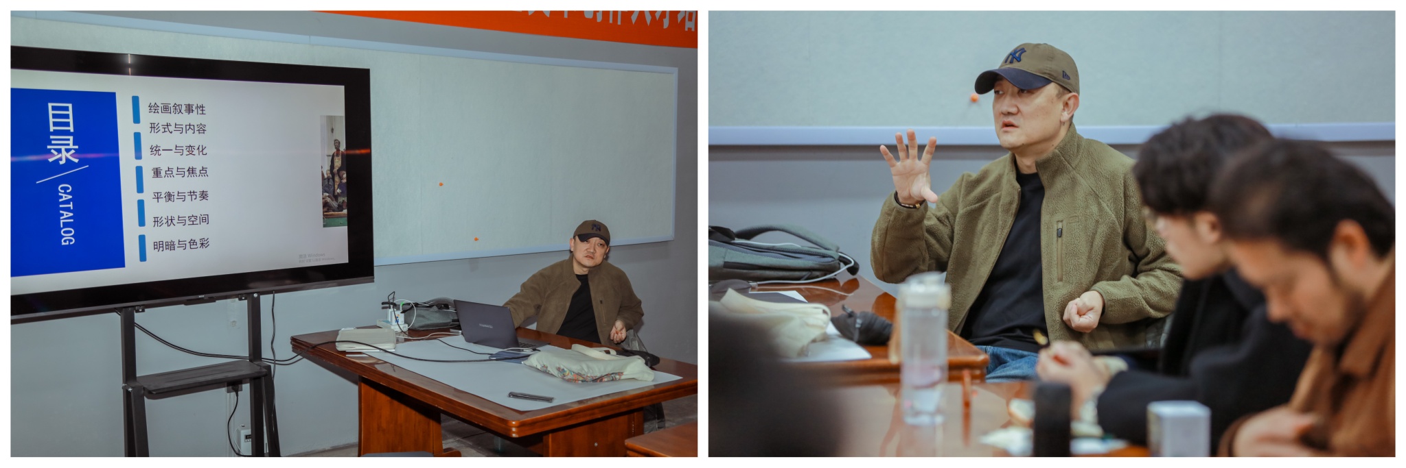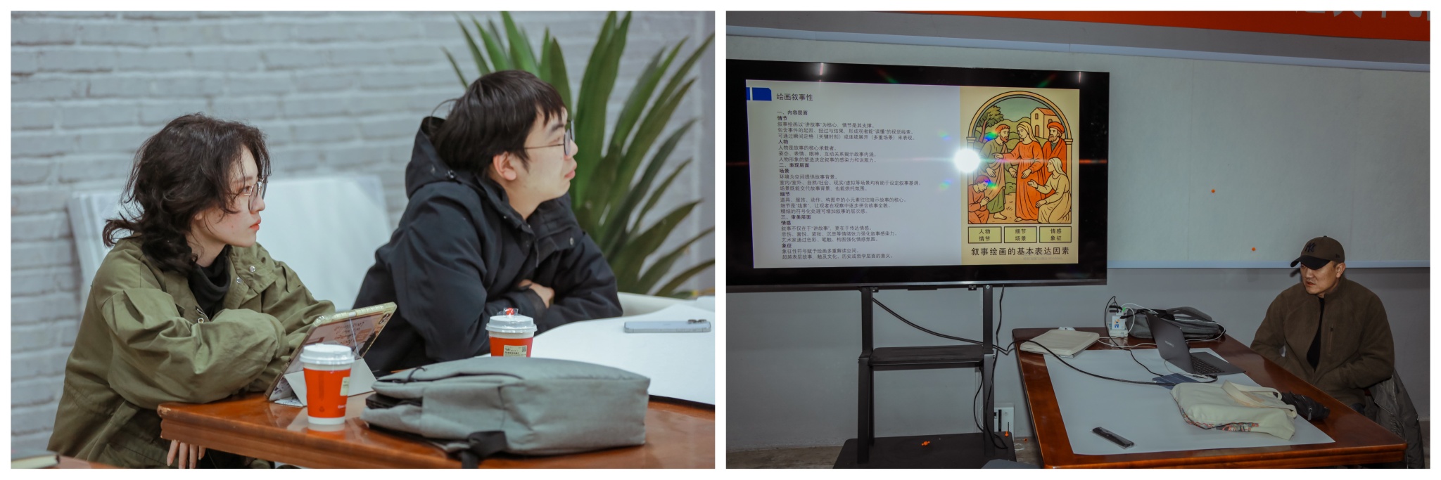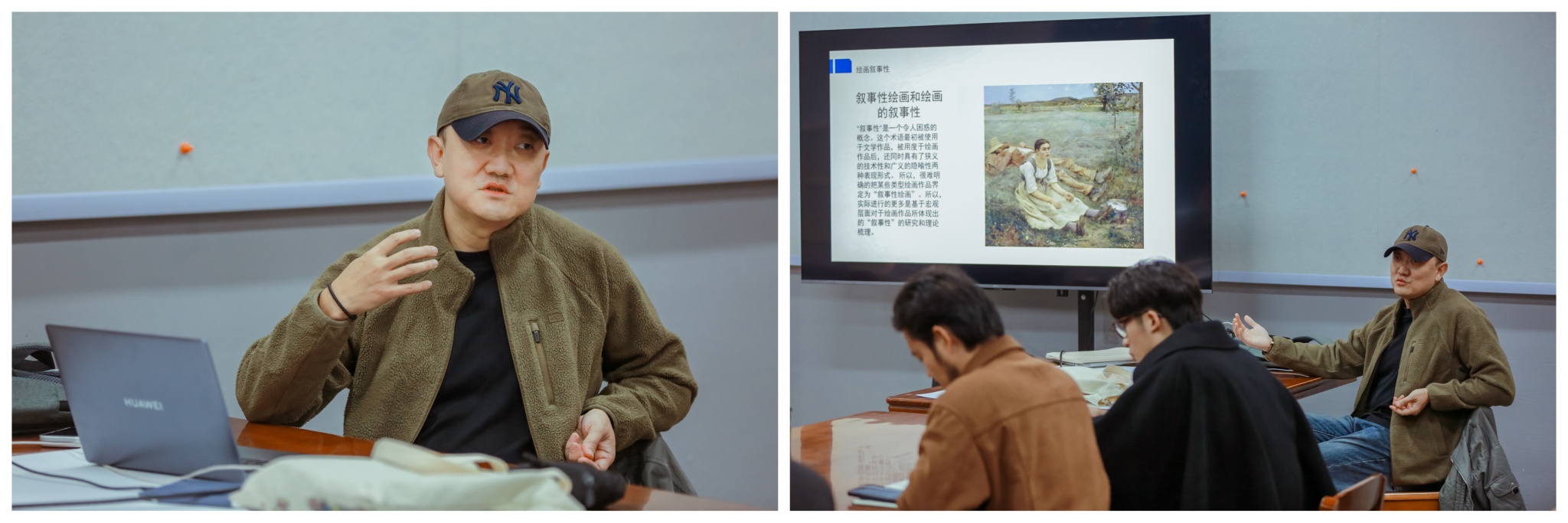 授课过程中,学员们专注聆听、积极互动,围绕自身创作中遇到的叙事表达困惑与付教授展开深入交流。大家纷纷表示,付巍巍教授的课程不仅系统梳理了叙事性绘画的创作逻辑,更提供了将东北乡土文化转化为视觉叙事的有效路径,为后续的主题创作打开了新思路、提供了新方法。