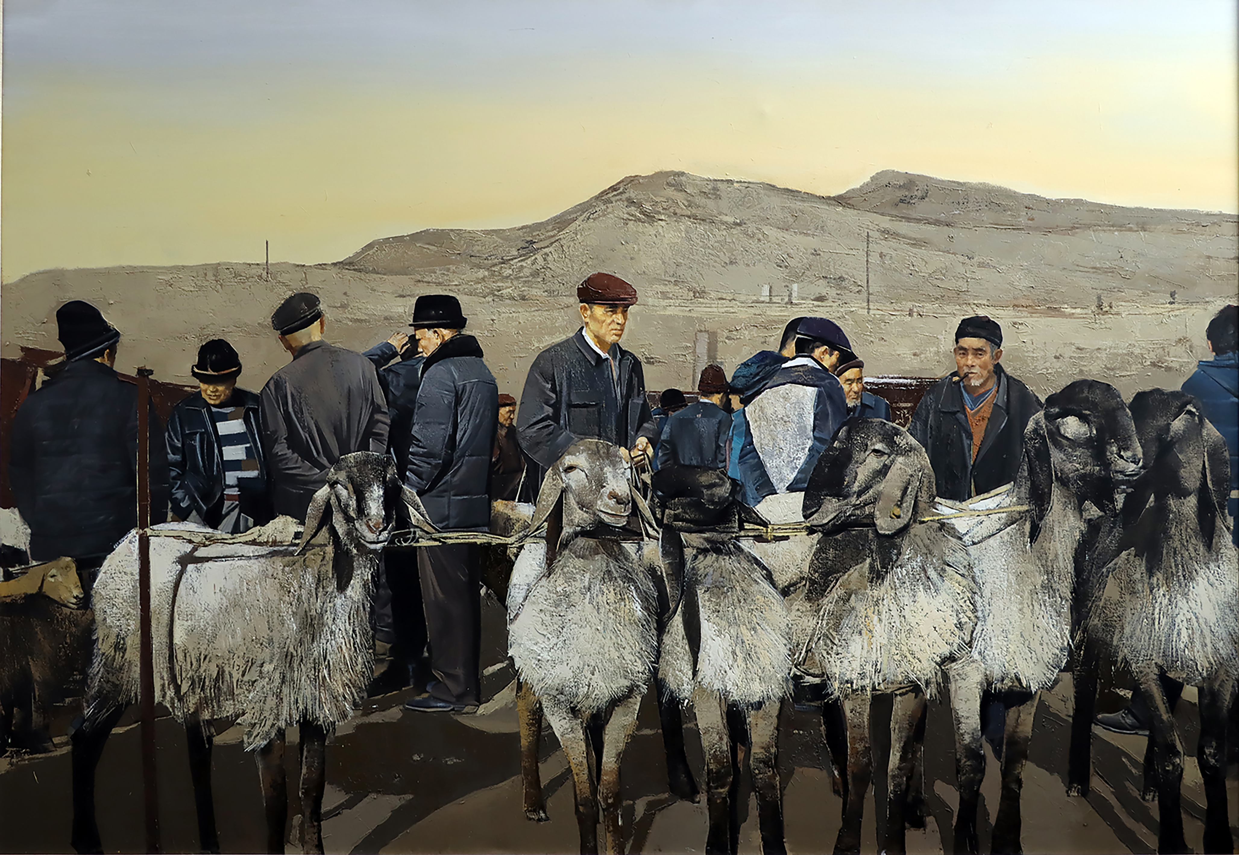 宋荣耀深耕乡土主题创作十余年,形成了以“扎根生活、承古创新、意境为先”为核心的创作理念,兼具情感温度与艺术质感。他始终坚持“画自己熟悉的题材”,将创作视角聚焦于乡土场景与自然风貌,拒绝脱离生活的空泛表达。从《峨庄古村落系列》对传统村落的描摹,到长期关注并创作的东北牛羊交易市场题材,均体现出对乡土烟火气的执着坚守。他认为乡土题材不仅承载着地域文化记忆,更藏有“肉眼无法看到的美”,需以心灵感知并挖掘,通过画笔记录时代变迁中的乡村风貌,唤起人们对传统文化与自然的珍视。